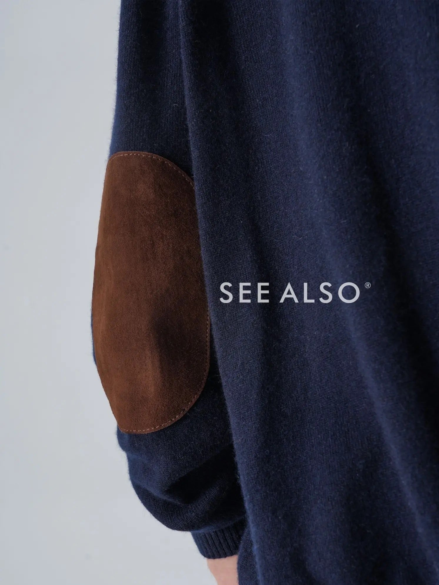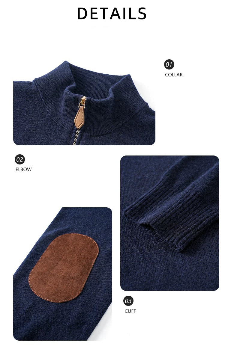 "Black Label Cashmere" super-fine spun wool long-sleeved elbow leather old coin half-zipper sweater
