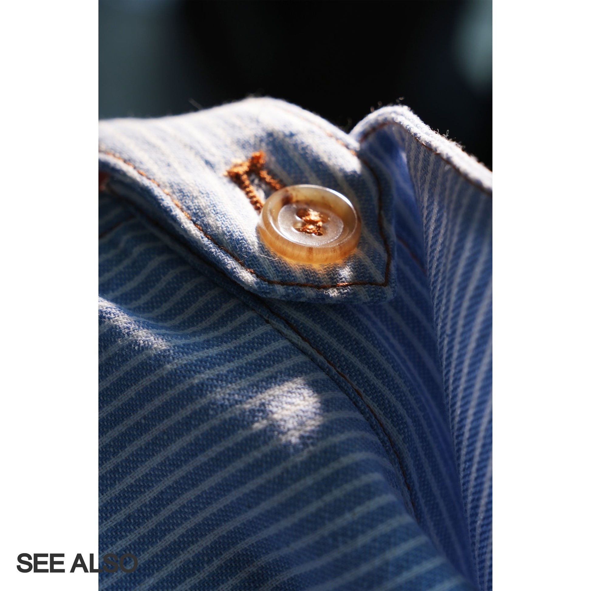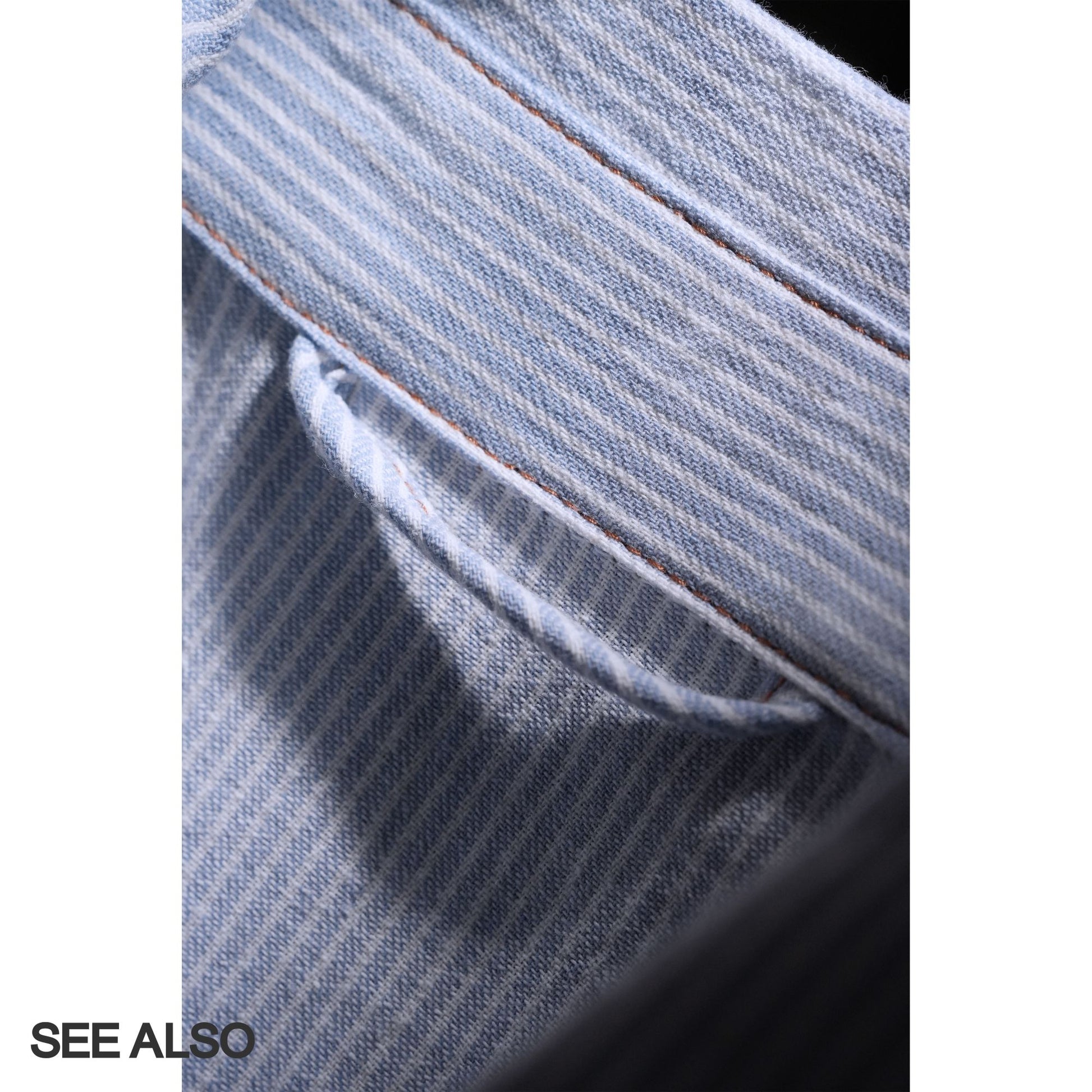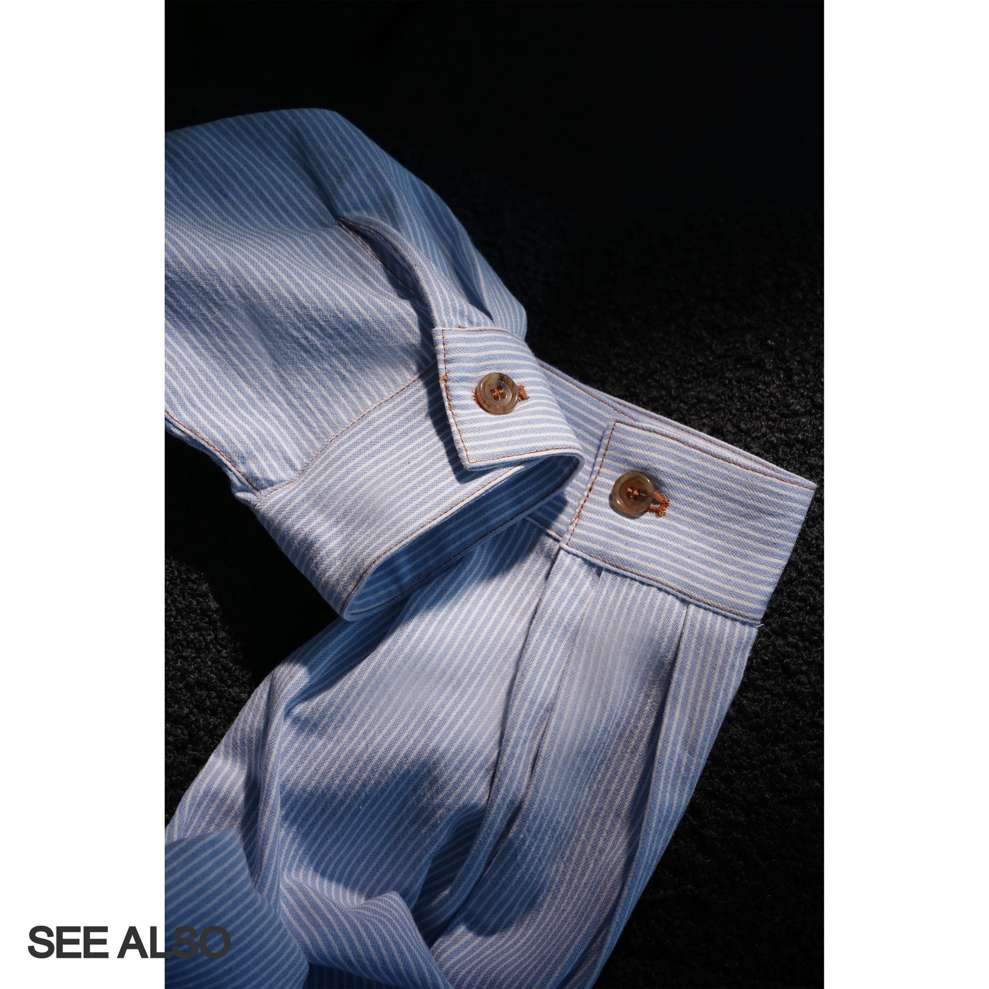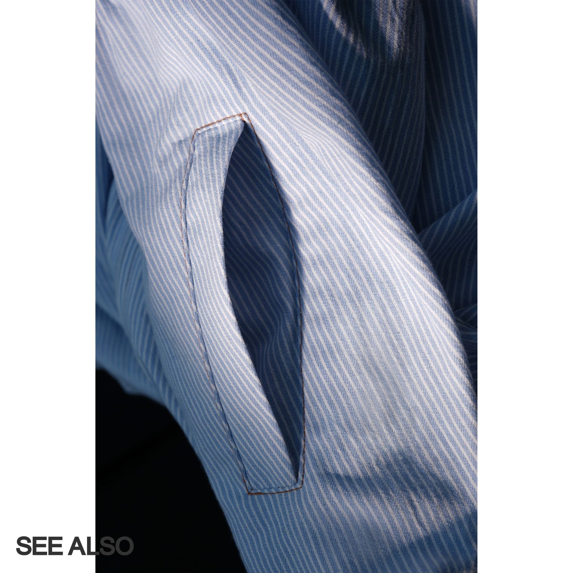 Experience refined casual elegance with the "miu Early Autumn Collection" shirt jacket. This European-inspired piece features a relaxed fit and minimalist design highlighted by light blue and white stripes. Crafted for seamless layering, the soft lapel collar adds subtle sophistication while the breathable fabric ensures comfort through transitional weather. Perfect for elevating your autumn wardrobe with effortless style and versatile wearability.From MiuMiu style.