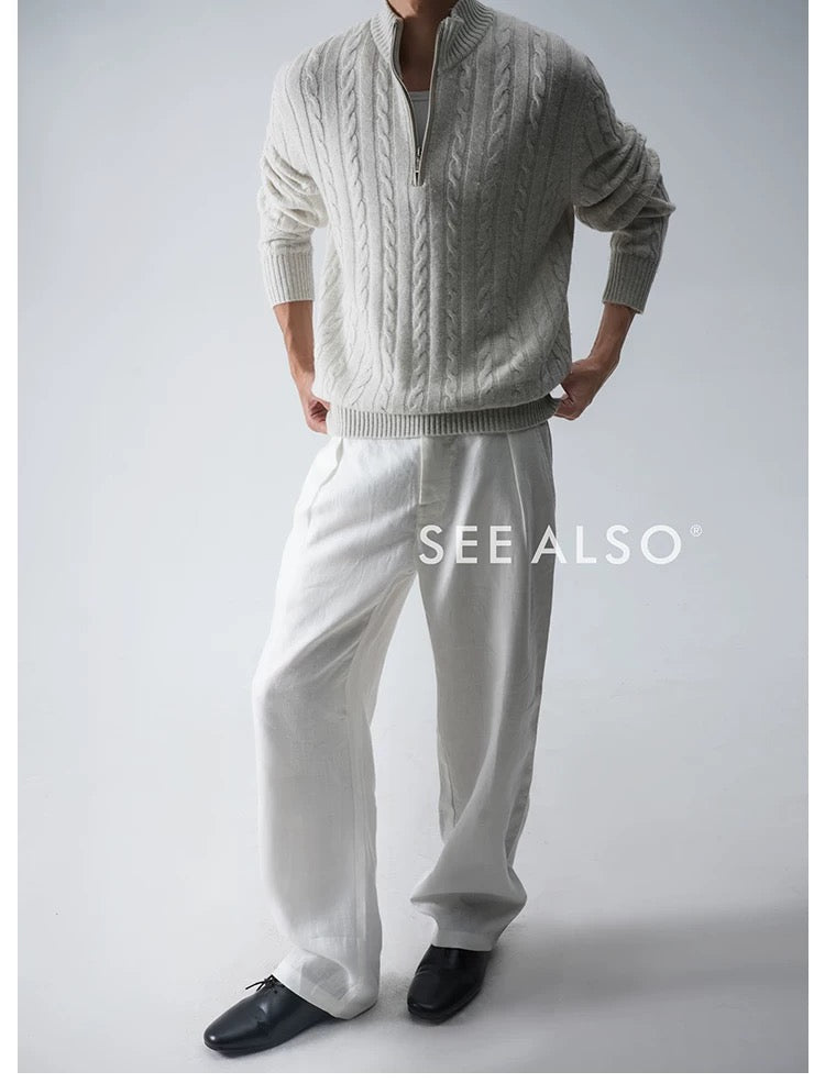 Crafted from "sheepskin cashmere" super-fine mercerized Basulan wool, this sweater embodies refined luxury with exceptional softness and durability. The mercerization process enhances fiber strength and luster, creating a fabric that exudes timeless elegance and modern sophistication. Designed for those who appreciate understated wealth, it offers both comfort and a distinguished aesthetic that seamlessly bridges classic heritage with contemporary style.